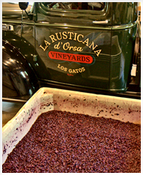 La Rusticana d’Orsa is a unique estate of rare beauty tucked away in the Santa Cruz Mountains, an appellation dedicated to fine wine production since the 1880s. The life’s work of Frank and Marilyn Dorsa, the vineyard is set atop terraced rolling hills delineated by rock walls and accented by roses, Italian Cypress, sculpture gardens, lily ponds, and fountains. It is a spiritual microcosm of Old World charm and peace seemingly light-years away from the bustling Silicon Valley below. |